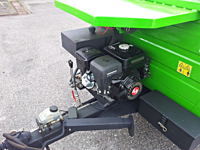 - 1 μπουκάλα πέντε φύλλων (υδραυλικό τηλεσκοπικό κύλινδρο) και κύκλωμα υψηλής πίεσης λαδιού με γρήγορη σύνδεση DN 12 παροχής από το τρακτέρ η από το αυτόνομο σύστημα που διαθέτη το μηχάνημα για να ανατρέπεται η καρότσα της πλατφόρμας