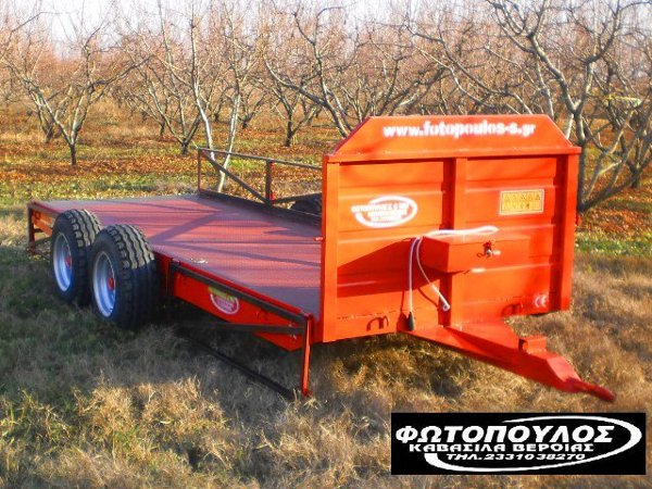 Διαξονική συρόμενη ρυμούλκα μεταφοράς αγροτικών προϊόντων 8+ τόννων μεικτό βάρος. Πλατφόρμα, καρότσα τετράτροχη με χαμηλό κέντρο βάρους όπως και χαμηλό ύψος φόρτωσης κατάλληλη για ασφαλείς μεταφορές ακόμα και των ποίων δύσκολων φορτίων.(Ιδανική για φόρτωση μέσα από το χωράφι σε δενδρώδης καλλιέργειες πχ ελιές, ροδακινιές, κερασιές, μηλιές κτλ).